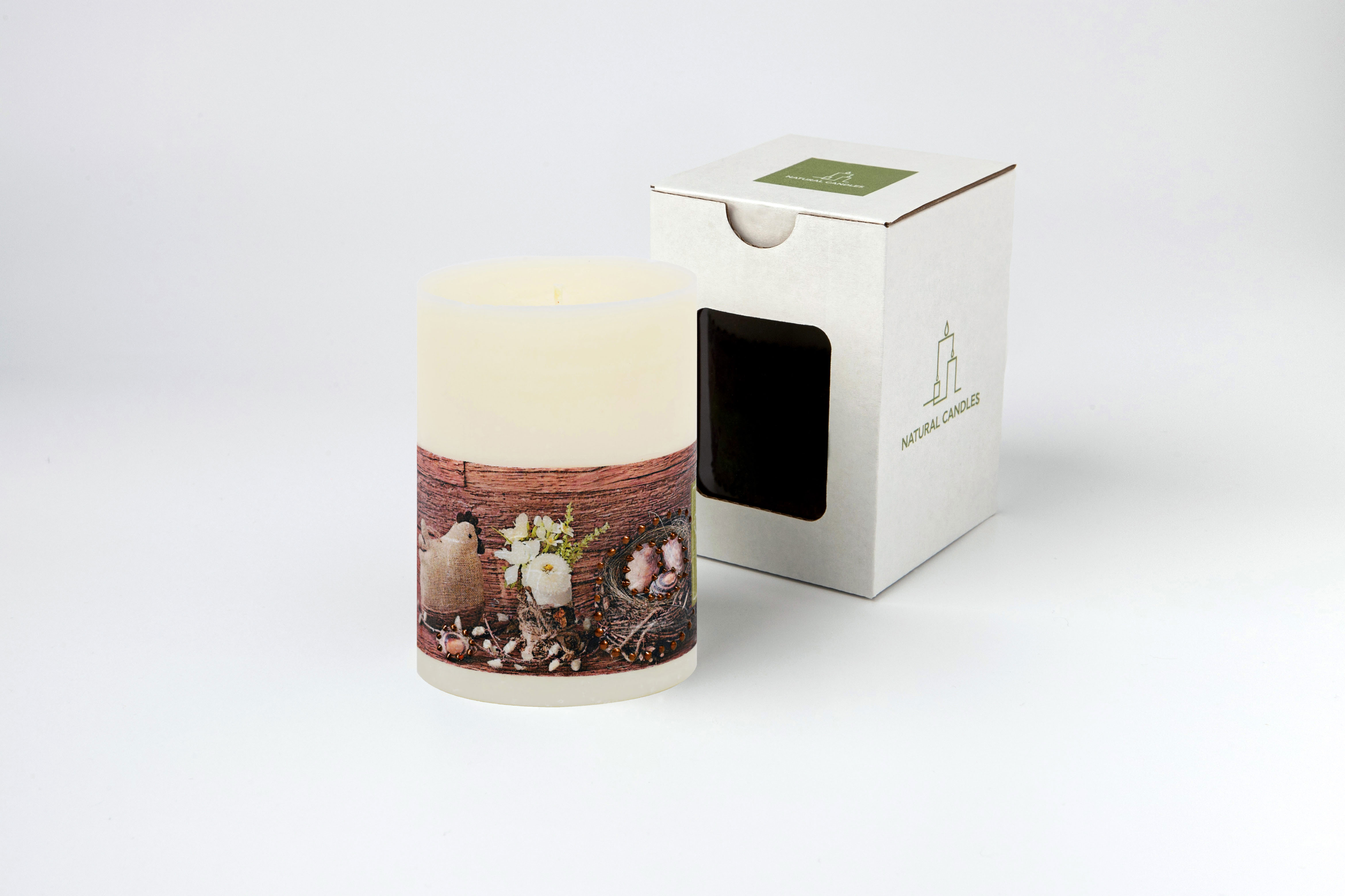 • Η συσκευασία των κεριών αποτελείται από κουτί από χαρτί κραφτ με παράθυρο.