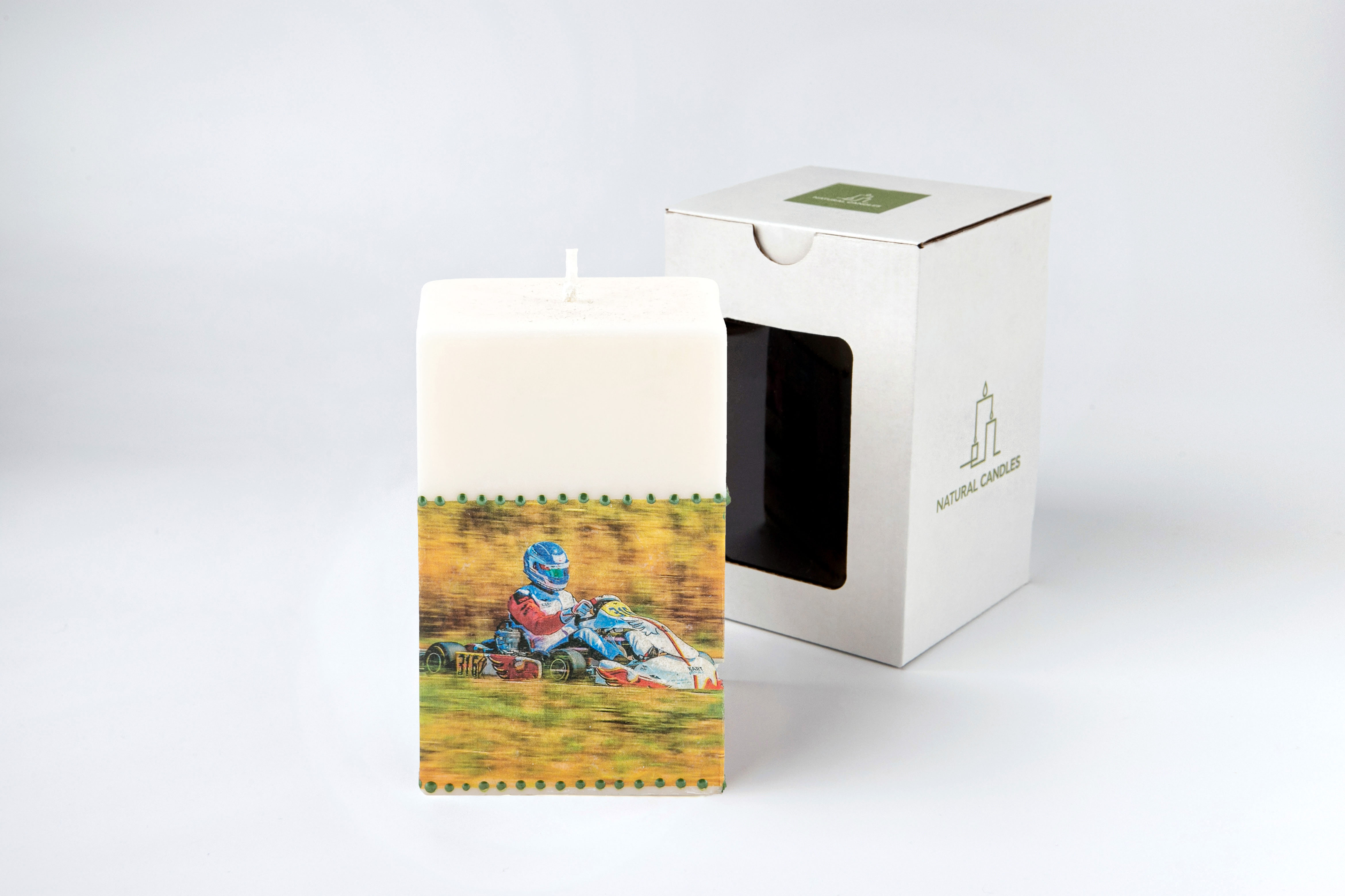 • Η συσκευασία των κεριών αποτελείται από κουτί από χαρτί κραφτ με παράθυρο.
